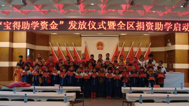 "寶得助學金":2006年至今,已連續(xù)四年每年捐資100萬元,在全區(qū)范圍內(nèi)資助2000名享受低保家庭的貧困學生,每人500元。