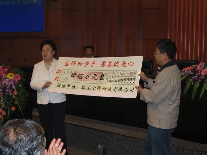 "寶得教育基金":2006年,在鞍山市第十三中學50周年校慶時,寶得公司一次性捐資100萬元用于獎勵優(yōu)秀學生教師、資助寒門學