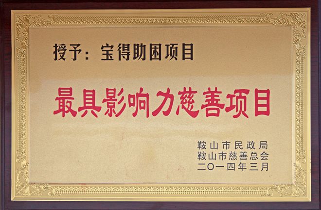 3月7日,在鞍山市慈善總會(huì)第三次會(huì)員大會(huì)上,公司榮獲“最具愛心慈善捐贈(zèng)企業(yè)”、“最具影響力慈善項(xiàng)目”榮譽(yù),董事長(zhǎng)榮獲“最具愛愛心慈善楷模”榮譽(yù)稱號(hào)。
