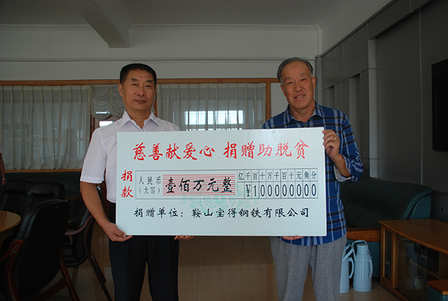 9月1日,《中華人民共和國(guó)慈善法》正式頒布實(shí)施的當(dāng)天下午,鞍山寶得鋼鐵公司的一位代表風(fēng)塵仆仆來到市慈善總會(huì),捐出專項(xiàng)善款100萬元,并轉(zhuǎn)達(dá)了寶得公司董事長(zhǎng)張永全的話:“我要兌現(xiàn)承諾,只要企業(yè)經(jīng)濟(jì)效益好了,只要我們還有這個(gè)能力,就要繼續(xù)獻(xiàn)愛心,就要幫助那些有困難的人。”